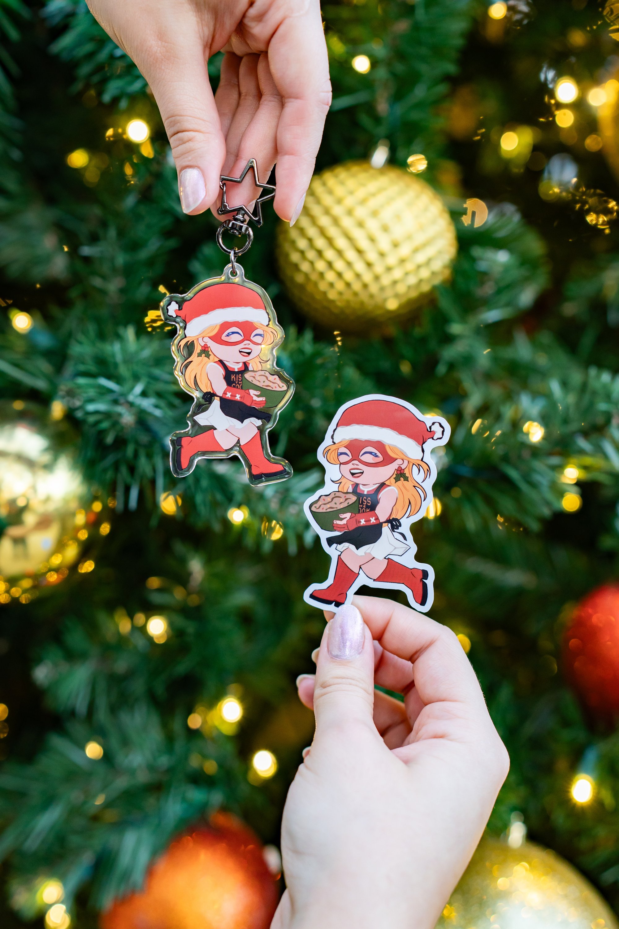 Character set for Arrowette including one (1) Acrylic Keychain and one (1) Vinyl Sticker.