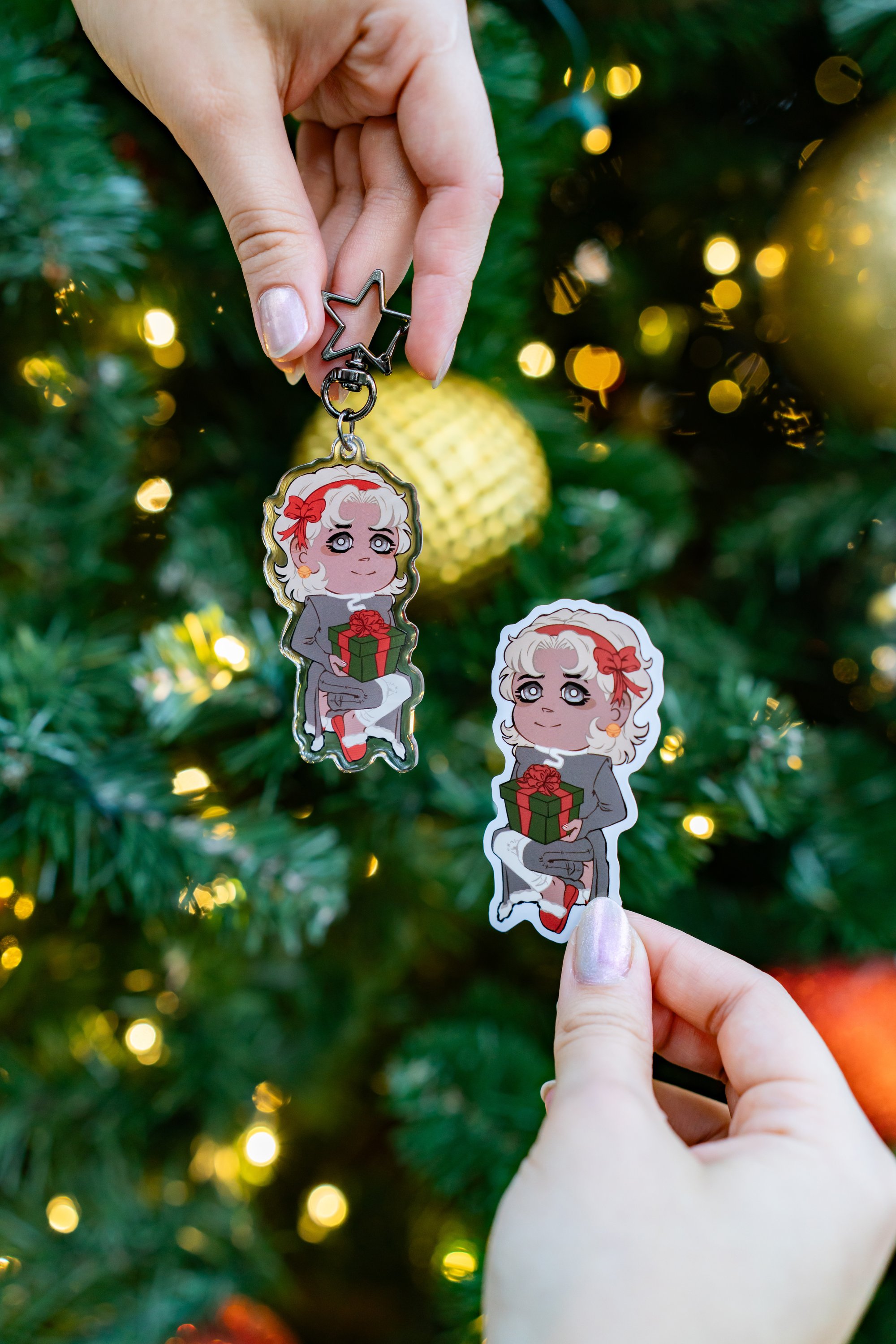 Character set for Secret including one (1) Acrylic Keychain and one (1) Vinyl Sticker.