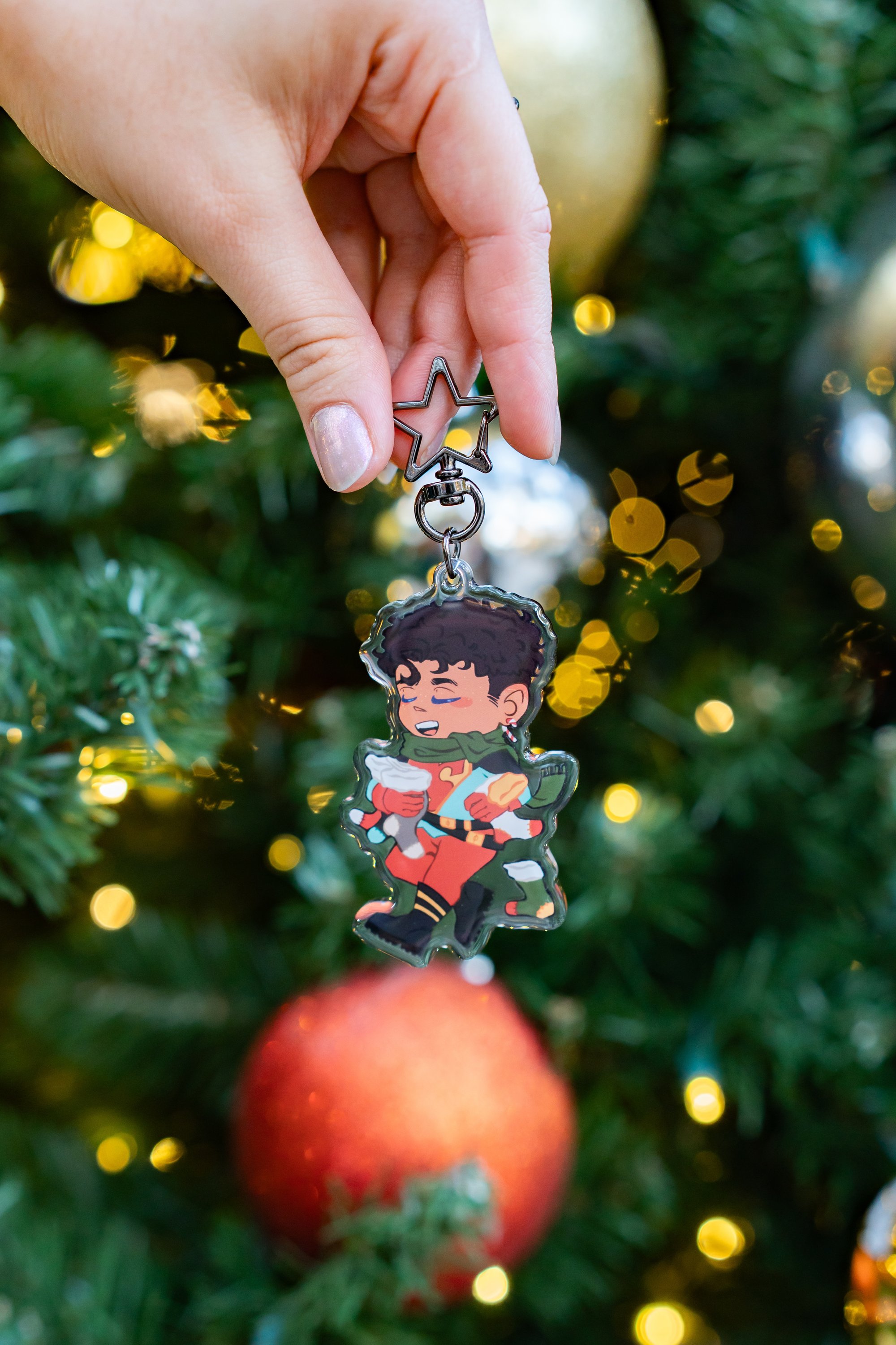 Acrylic key chain with a gunmetal star featuring Kon-El as Super Boy in the holiday spirit.